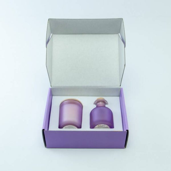 Luxegiftbox geurkaars & diffuser gevuld - frosted lila